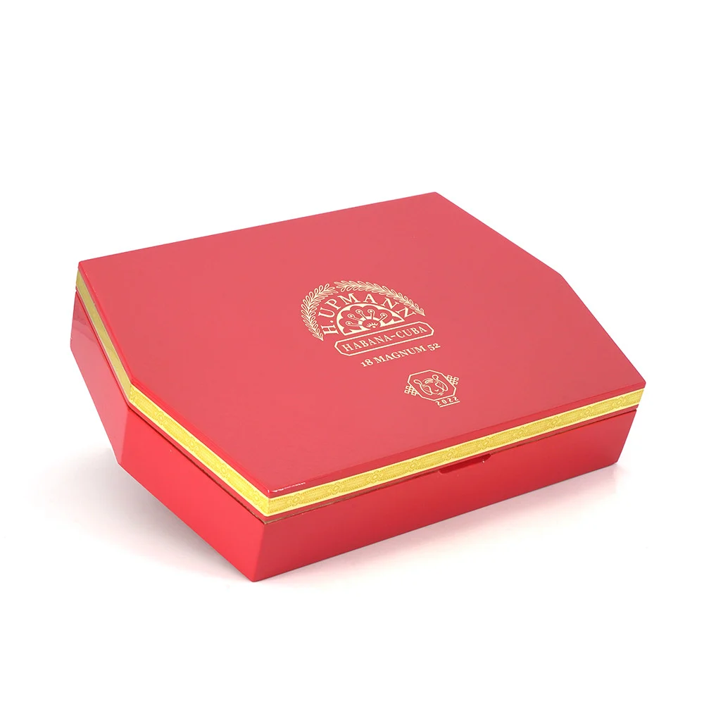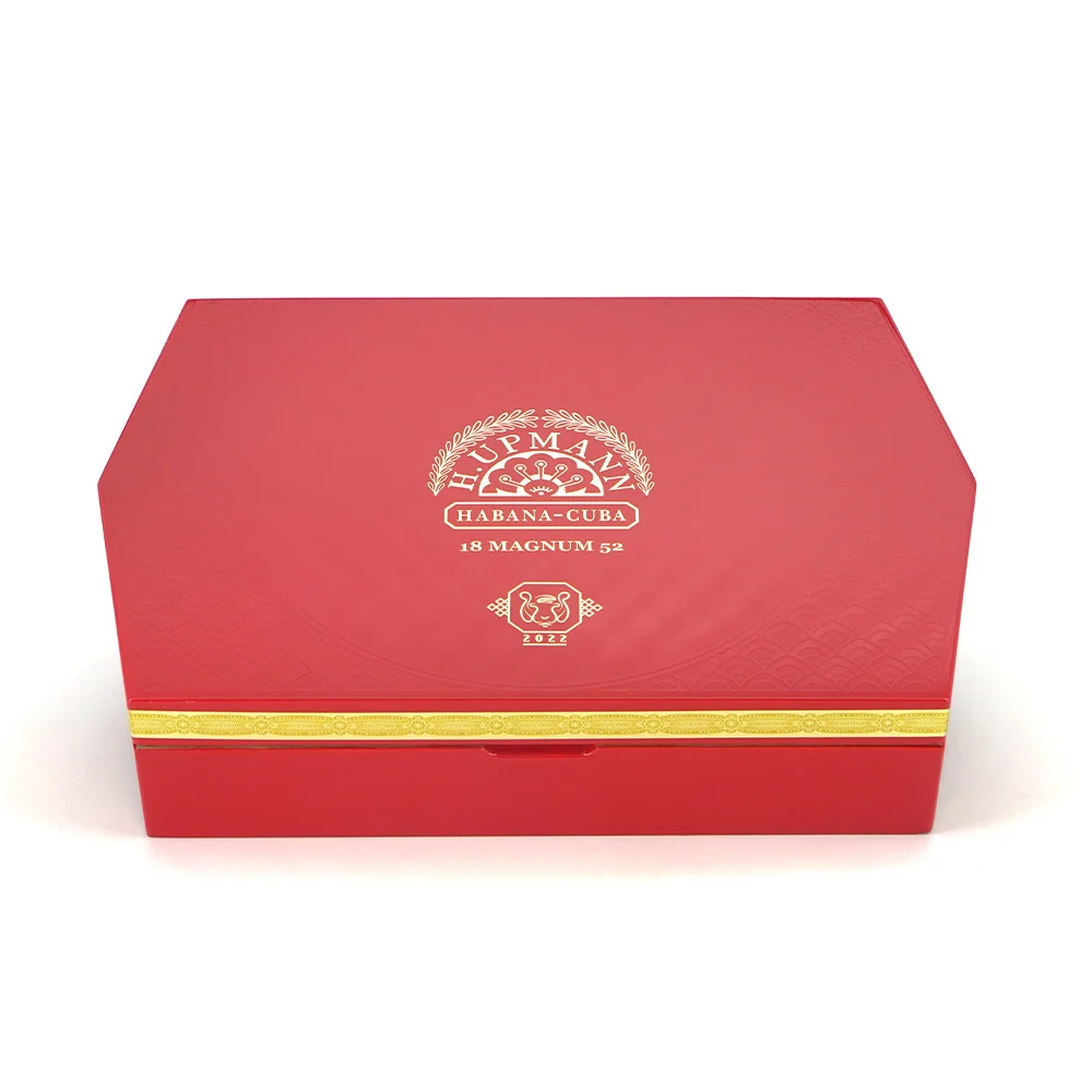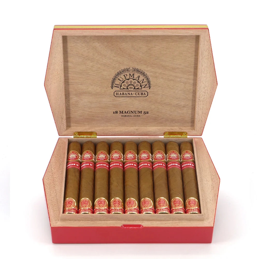 H.Upmann Magnum 52是一款新型维托拉,以温和至中等强度体现了该品牌的精致个性,提供高品质和无与伦比的香气。与精心挑选的烟草混合,呈现出强大而复杂的体验。它包含18支华丽的雪茄,精美地呈现在一个六边红漆盒中,上面浮雕著优雅的东方图案,围绕著品牌标志和虎年徽章的金色点缀。