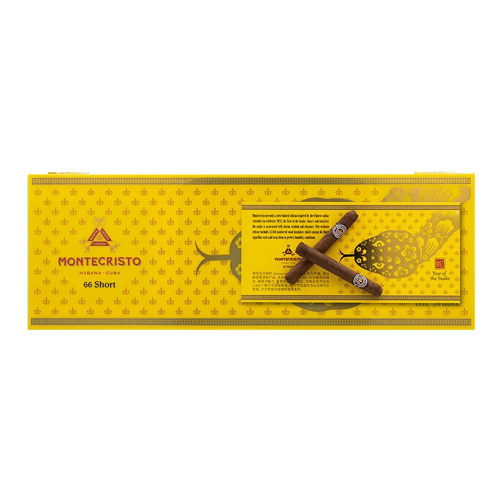 蒙特克里斯托(Montecristo)以农历生肖为灵感,推出新款限量版产品,庆祝2025年蛇年。蛇以机智敏锐而闻名,被视为魅力、智慧和优雅的象征。本限定系列包含13,480个编号雪茄保湿盒,每个雪茄盒内含66支短号小雪茄,并为其提供理想的湿度条件。